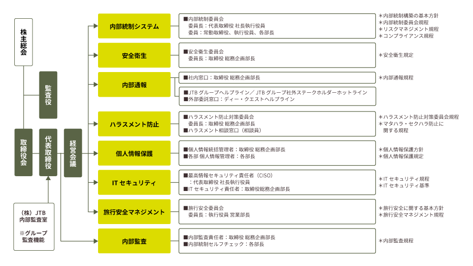 さらに、委員会や責任者、窓口担当と社内規程をもって設置し、リスクマネジメント体制を