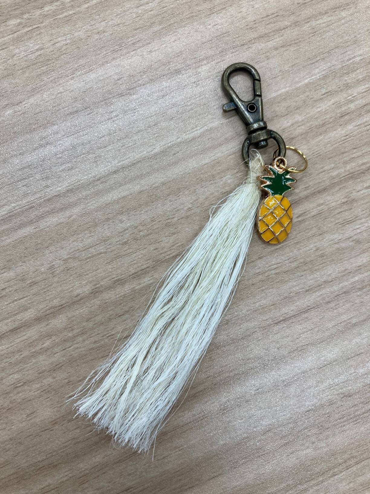 パイナップルのチャームをつけてかわいいキーホルダーに仕上げました。