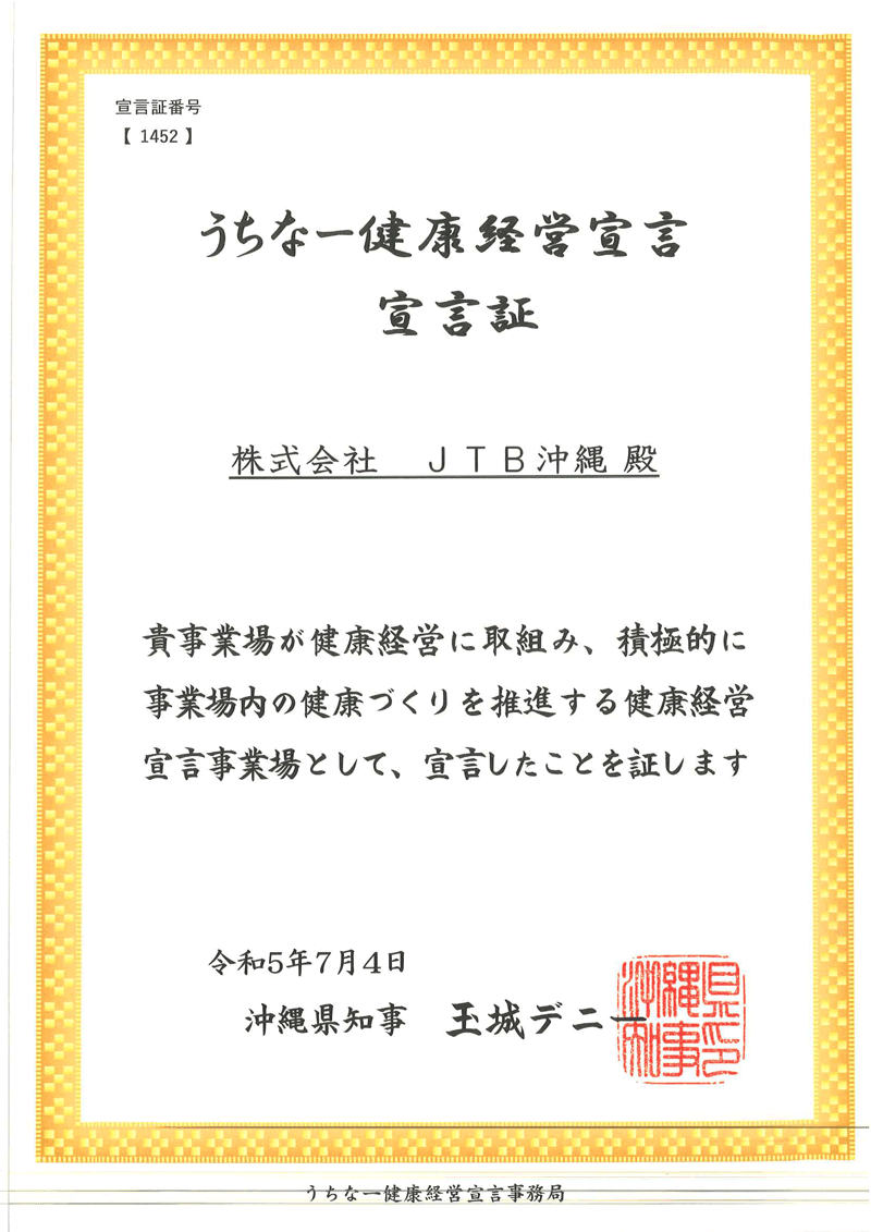 2023年7月に沖縄JTBが「うちなー健康経営宣言」した事業者として登録されました。