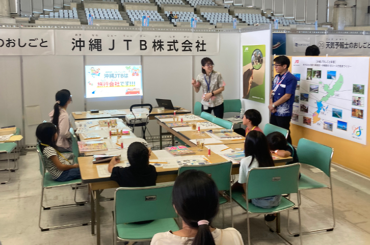 観光業の次世代育成や教育機会の提供のため、積極的に社外イベントへの参加やインターンシップの受け入れを行っています。2024年度は沖縄県主催の「沖縄観光こどもみらいお仕事体験」に参加し、多くの小学生が『沖縄本島日帰り旅行の行程作り』を体験しました。今後も子どもたちが沖縄の魅力に気づく学びの場を提供していきます。